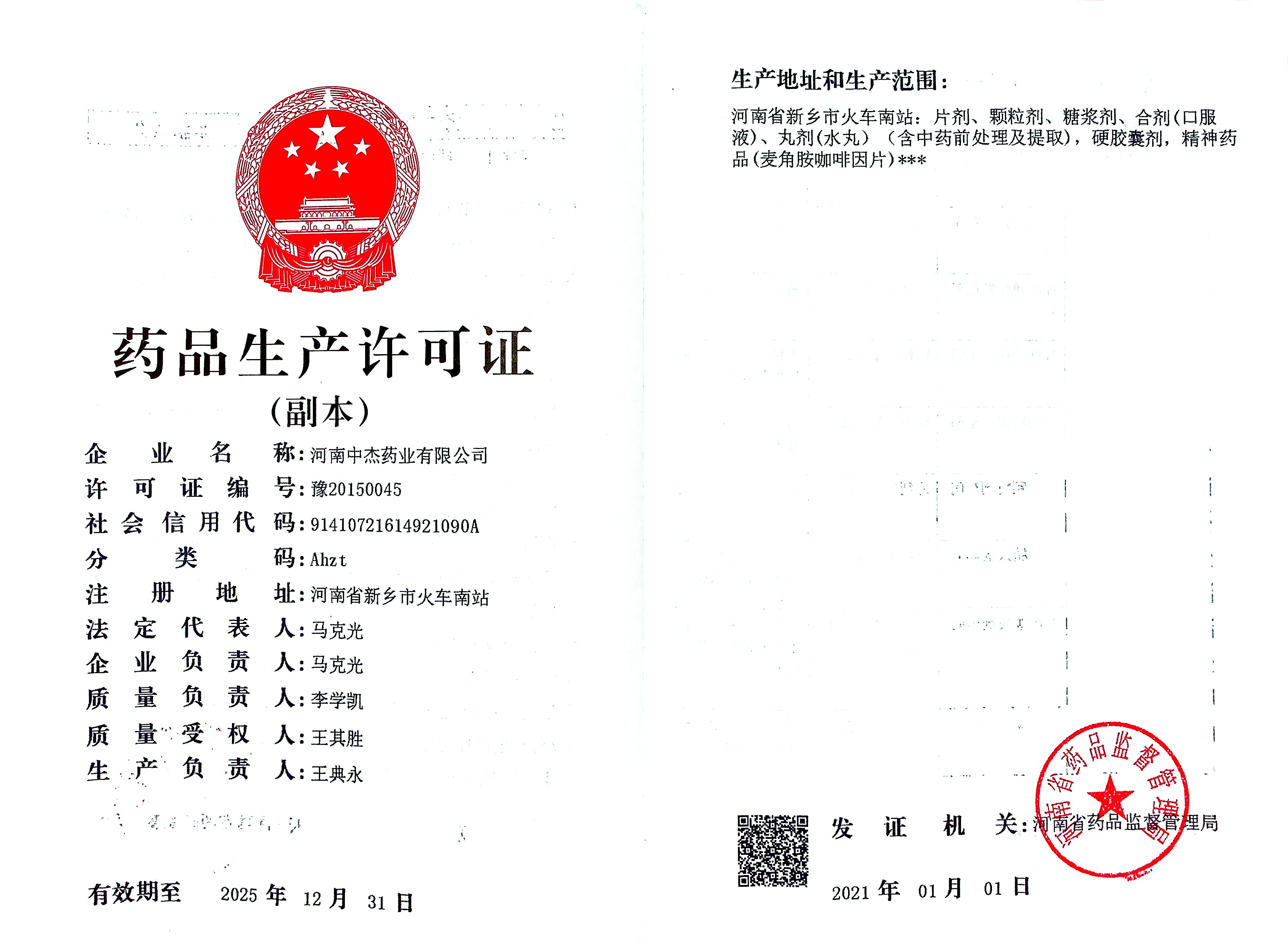 藥品生產(chǎn)許可證